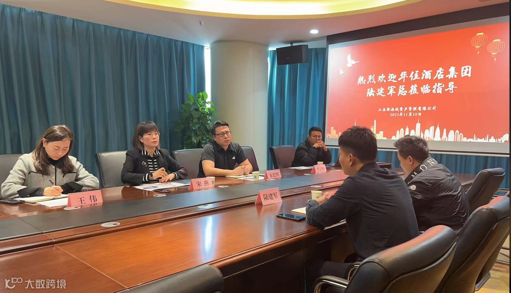 11月8日,江苏省商业联合会智慧商业专委会会长韩相礼与鹏欣集团南京水游城总经理熊志伟一行来新海连集团调研交流,双方就园区运营方面进行深入探讨。