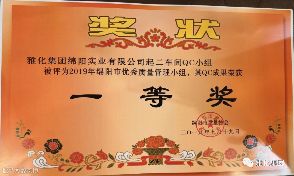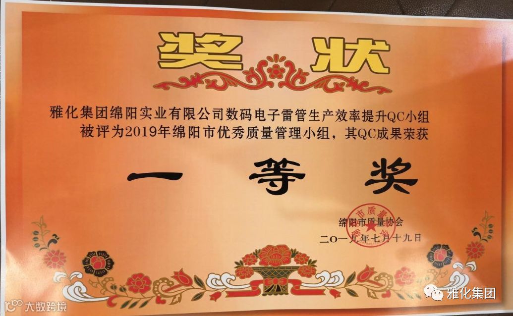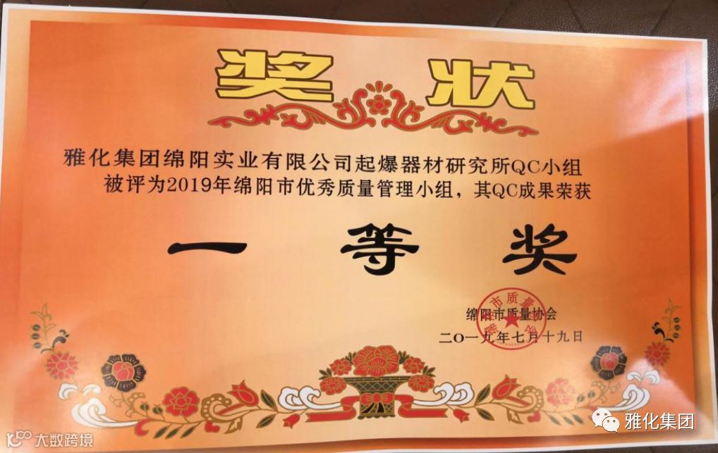7月18日,绵阳市第四十届质量管理小组代表会如期举行,大会共筛选出78个QC质量小组和13个质量信得过班组汇报成果。雅化集团绵阳公司数码电子雷管生产效率提升QC小组、二车间QC小组、起爆器材研究所QC小组,QC成果均荣获一等奖,绵阳公司质量管理部部长徐纯媛同志被评为“2019年绵阳市质量管理小组活动优秀推进者”。
