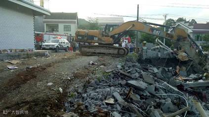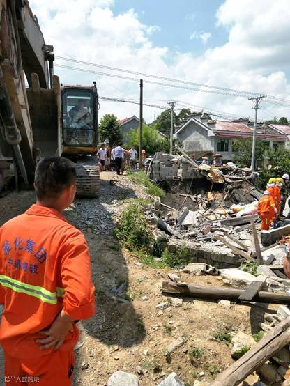 7月24日中午13:11分,秀山县石耶镇一村民自建三层小楼在装修的过程中突然发生倒塌,4名装修工人被掩埋在废墟下。在正在石耶镇附近施工的雅化集团中鼎公司秀山分公司一支作业队伍接当地派出所的求援电话后,迅疾出动1辆挖掘机及6名工作人员赶往现场开展救援工作。经过与随后赶到的消防官兵的不懈努力,被埋废墟的受困人员有1人获救。