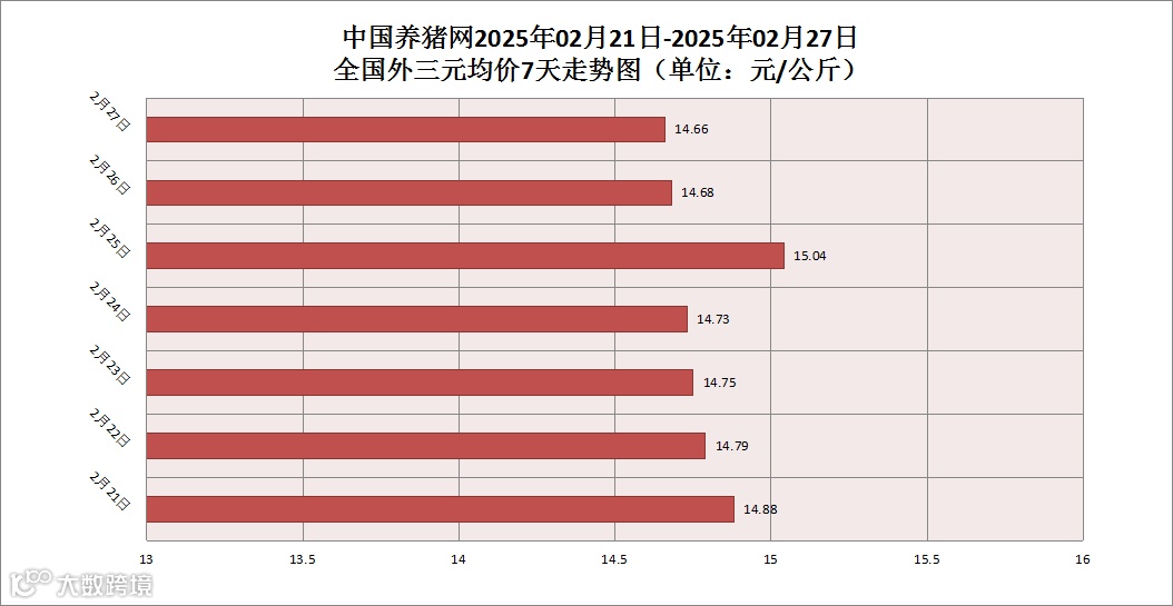 根据“2025年02月27日-中国养猪网生猪(外三元)均价涨跌表”发现,国内外三元生猪价格呈现持续下行的态势。当日全国平均价格有所下降,但地区间的猪价表现并不一致,部分区域可能受到当地供需状况、物流条件、以及政策因素的影响。此外,从市场的购销情绪上看,当前市场参与者的态度较为谨慎。养殖端出栏积极性总体偏高,这可能是由于前期猪价持续低迷导致部分养殖户急于出售以减少损失或回笼资金。然而,随着元宵节及开学季的到来,理论上这些因素应能对猪价产生一定的提振作用,但实际上猪价并未出现明显的反弹,反而继续呈现“大稳小动”的格局。展望未来,短期内猪价走势可能仍将受到消费淡季的影响,预计猪价总体将保持偏弱走势。不过,考虑到局部市场可能出现的短时反弹回涨机会,以及商品仔猪价格的变化趋势,长期来看,猪价可能会经历一段时间的调整期,之后有望自底部缓慢回升。在这种背景下,养殖户需要密切关注市场动态,合理安排生产和销售策略,以应对潜在的市场变化。