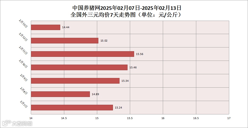 根据“2025年02月13日-中国养猪网生猪(外三元)均价涨跌表”发现,国内外三元生猪价格呈现持续下跌的态势。这进一步加剧了养殖业的经营压力。当前,猪价下跌的主要原因在于供应过剩与需求疲软的双重夹击。一方面,生猪出栏量持续增加,市场供应充裕;另一方面,节后消费需求未能有效提振,导致猪价持续承压。此外,饲料成本的上涨也进一步压缩了养殖户的利润空间。面对这一困境,养殖户需要密切关注市场动态,及时调整养殖策略,以应对猪价波动带来的风险。