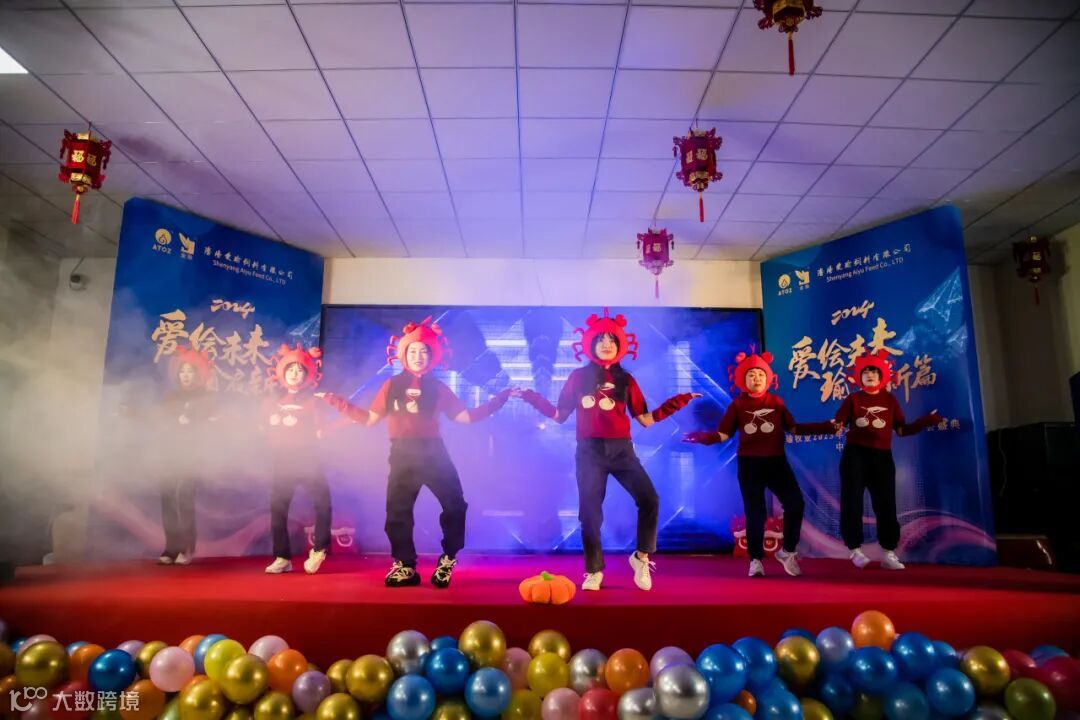 在播放完爱瑜牧业20周年宣传视频之后,张杨、王芳、王平、孙丽花、闫文琪、苏芮带来精彩的开场show节目《科目三》,与大家共同迎接龙年“开门红”。