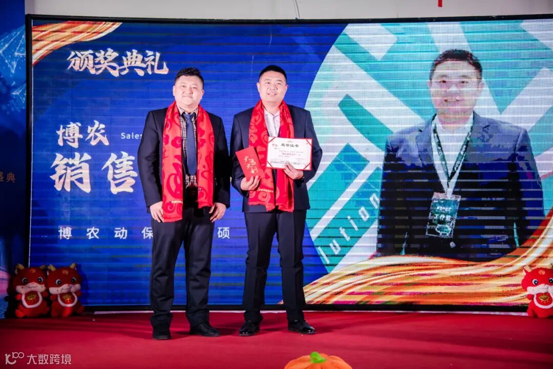 爱瑜牧业董事长助理赵甲彝先生和爱瑜牧业销售总监李德伟先生为其颁奖。