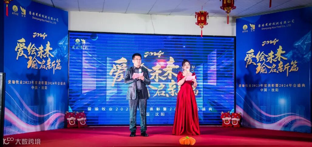 本次年会通过精彩的节目表演、颁奖仪式、幸运抽奖等环节,全面回顾过去一年爱瑜牧业的发展,共同迎接充满挑战的2024年!长春爱特杰饲料有限公司总经理祝力伟、沈阳爱瑜饲料有限公司行政部主任赵辉担任主持人。