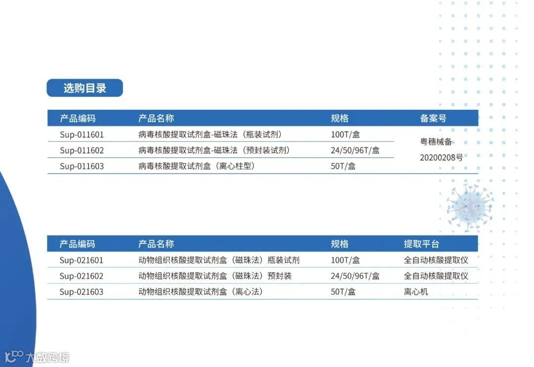 特点:病毒超大提试剂盒,适合畜牧领域环境样本病毒混样检测,成本低,灵敏度更高。