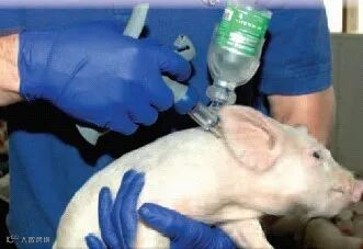 有的猪农给猪静脉注射,不挂吊瓶,直接用注射器往静脉血管里推药。