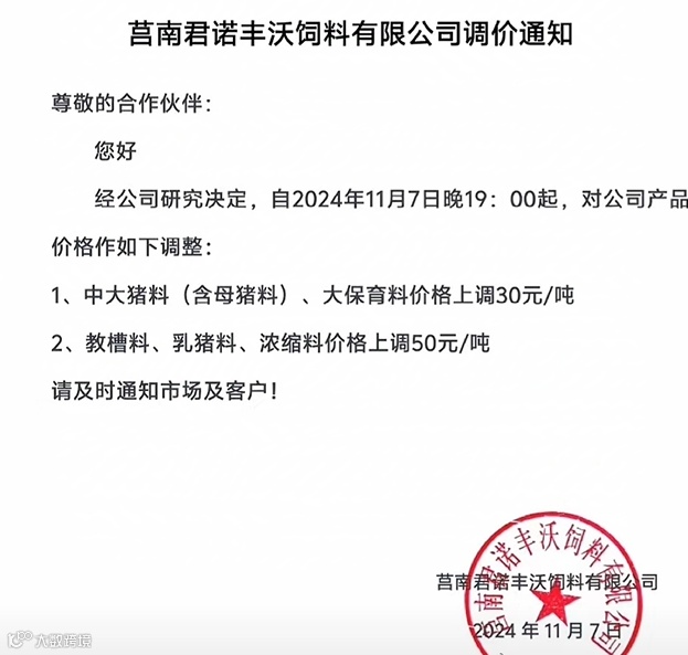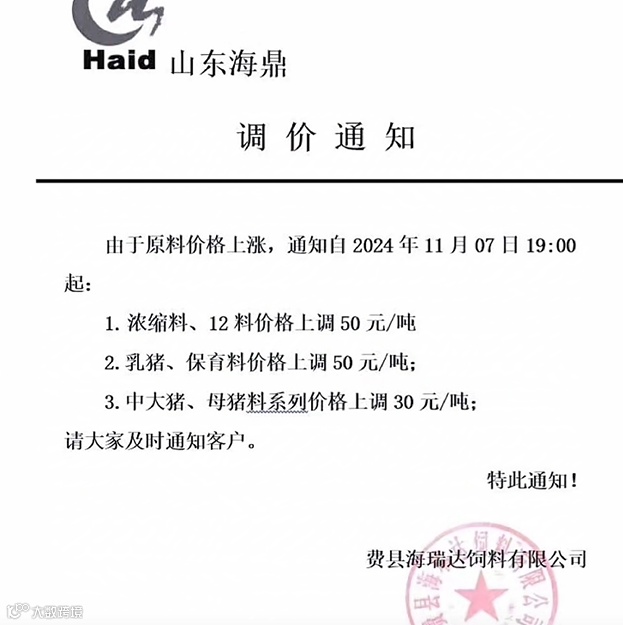 近期,新希望、海大、中慧、君诺、久久和牧等饲料企业纷纷宣布饲料涨价30~50元/吨。