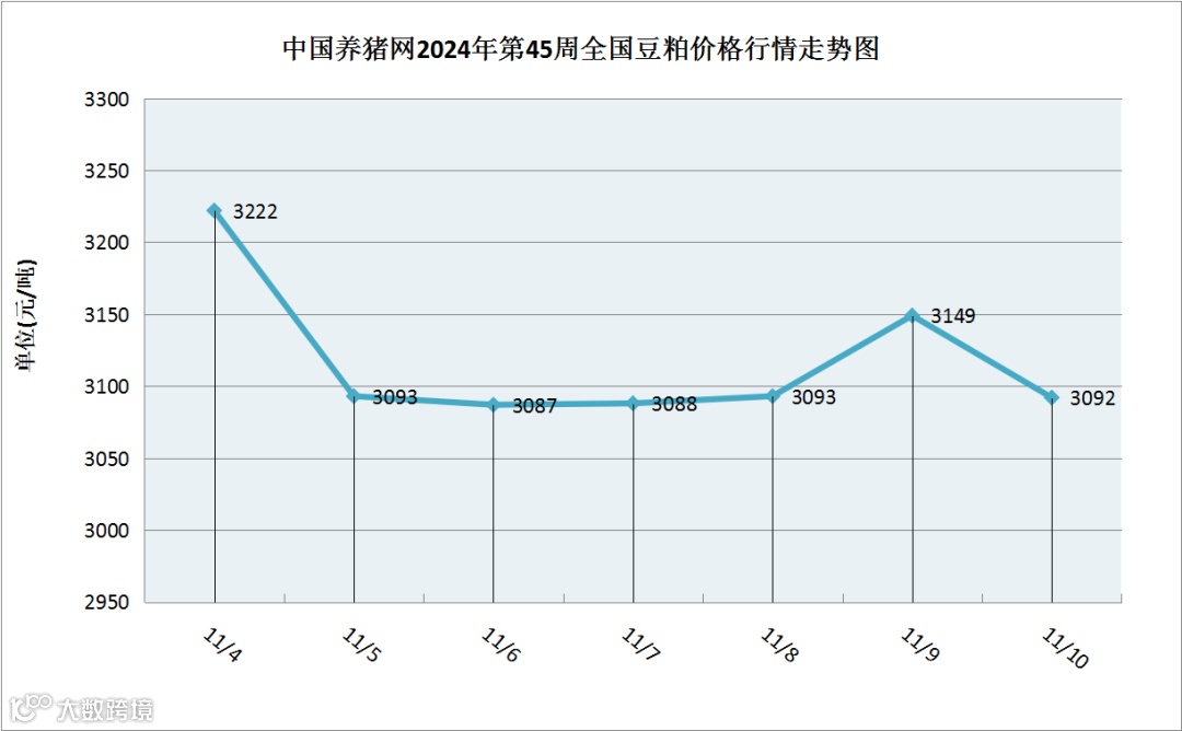 中国养猪网2024年第45周国内豆粕走势图