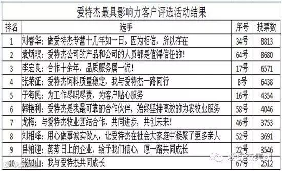 七月,“爱特杰牧业”微信公众平台火热进行的沈阳爱特杰[最具影响力客户评选活动]网上投票已经落下帷幕,活动得到了广大客户朋友及社会各界人士的热情响应,微信号关注人数24950人,总阅读量达1371929人次,共79796