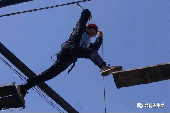 高空断桥是对胆识的挑战!(恐高的小编表示简直是要了命了…)团队中有两名女生经历了“断桥一小步,人生一大步”的巅峰挑战。不敢前行的女生,大家帮她放松心情,缓解紧张,但是她的腿不听使唤,就是迈不开步子。全体人员耐心等待,对她进行心理疏导和鼓励,最后终于跳出去了!另一名女生贾丹,第一次没有成功从桥上掉了下来,她流泪了,问她哭的原因,她并不是因为恐惧,而是因为给团队拖了后腿!看,我们就是在这样的体验过程中产生的集体荣誉感!在断桥上,让有些心理障碍的人瞬间去突破是很难的,但是一旦突破了,就会自信心爆棚。这个项目也让我们联想到在现实的工作和生活中,我们还没有尝试过的事情,千万不要轻易放弃。人生的旅途中会有很多时候有如我们站在断桥上一样,面临着各种挑战和考验,让人害怕、紧张、不知所措,但是如果我们止步不前,就会失去成功的机会!不论我们是作为一个管理者、执行者还是家庭成员、他人的榜样,面对机会和挑战的时候,就要勇于进取,抛弃一切杂念,为自己的目标拼尽全力!