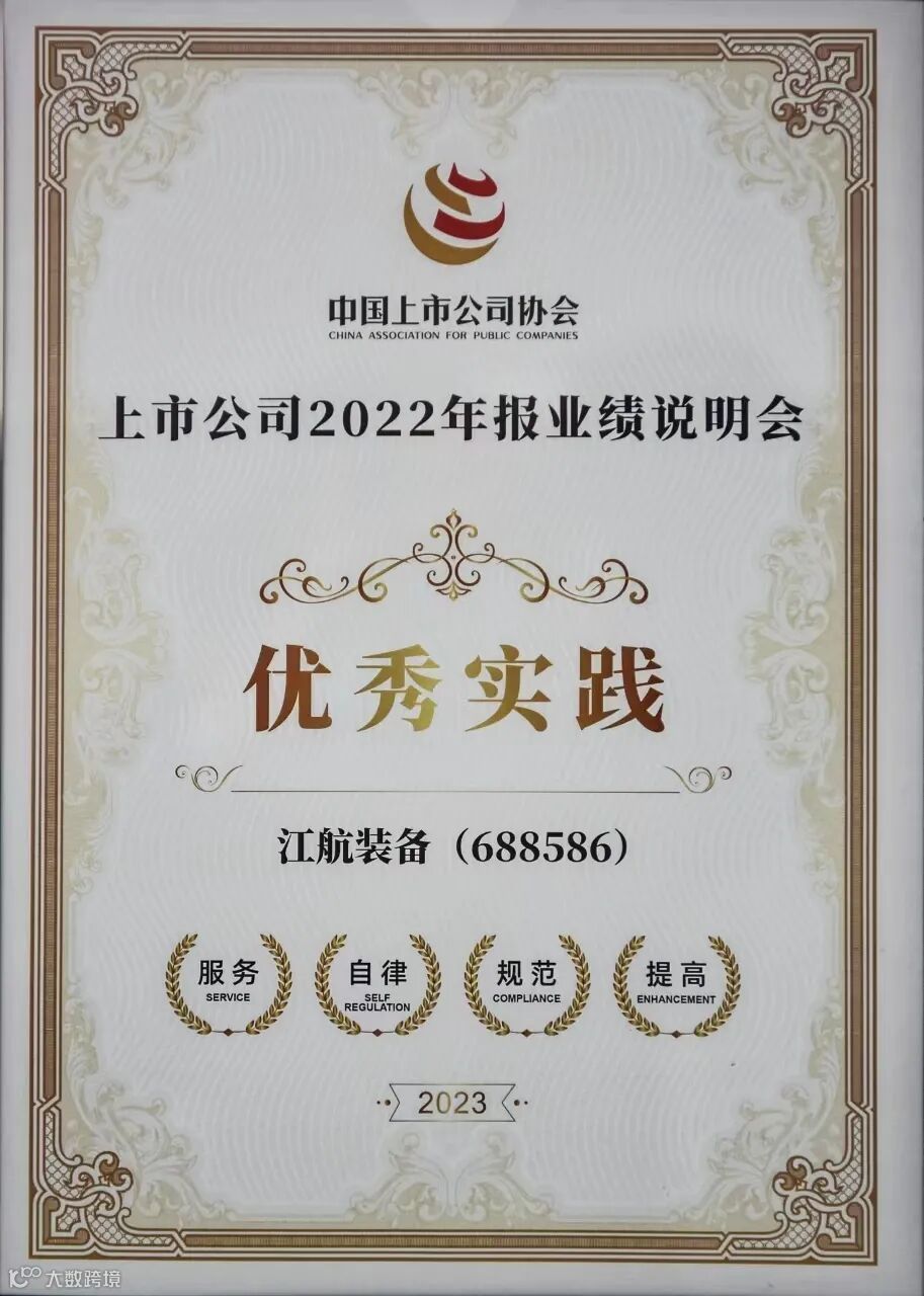 11月29日,2023中国上市公司发展论坛在福建晋江举办,中国上市公司协会(以下简称“中上协”)发布 “上市公司年报业绩说明会最佳及优秀实践”奖项,江航装备荣获“2022年报业绩说明会优秀实践”奖。
