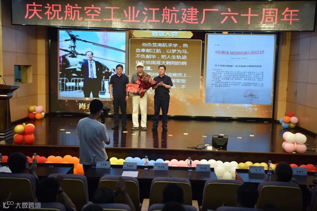 公司党委书记、董事长宋祖铭及党委副书记、总经理邓长权为肖永俊、王宝君两位建厂60年致敬人物现场颁奖。肖永俊同志在大会作了饱含深情的发言,他表示在党委领导班子的带领下,江航已迈入了全新的高质量发展阶段,全体离退休老同志对江航如今的发展深感自豪和欣慰,并真切祝愿江航未来的前路更加光明。
