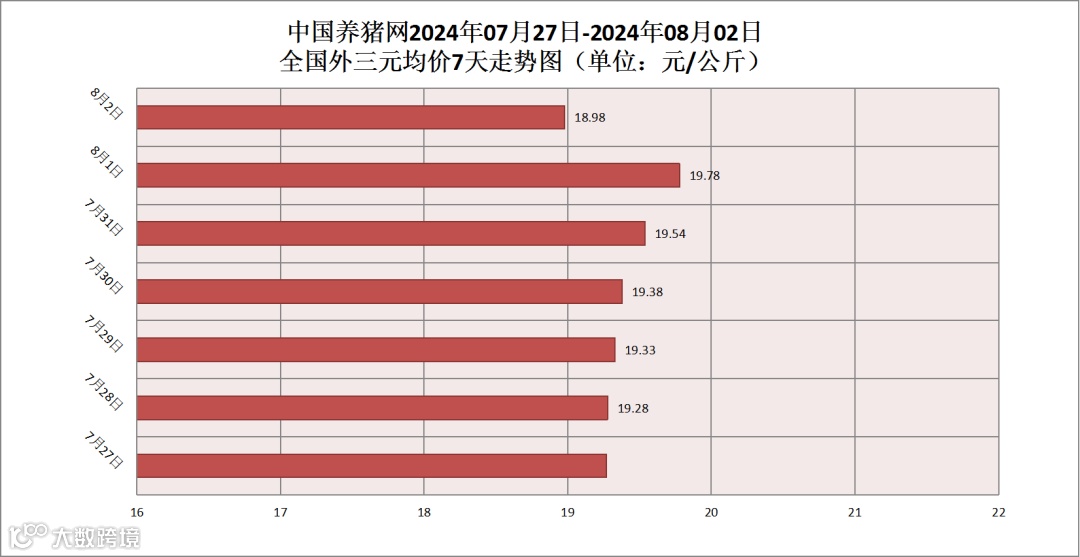 其他生猪品种方面,生猪内三元均价为19.52元/公斤,价格较昨日(19.45元/公斤)上涨了0.07元/公斤;生猪土杂猪均价为18.97元/公斤,价格较昨日(18.91元/公斤)上涨了0.06元/公斤。