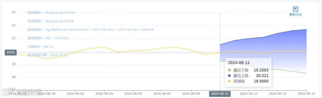 玄田算法是由项目课题组团队原创的非经典逻辑数值聚合理论和不确定性预测方法,构建了基于一致模算子的生猪价格预测模型。该模型采用的聚合函数及一致模相关理论与方法已获得多项国家自然科学基金和省级自然科学资金资助,并获得多项省级自然科学奖奖项。09月11日预测猪价为19.8880,置信区间在19.2583--20.521之间。09月12日预测猪价为19.9840;09月13日预测猪价为19.9429。