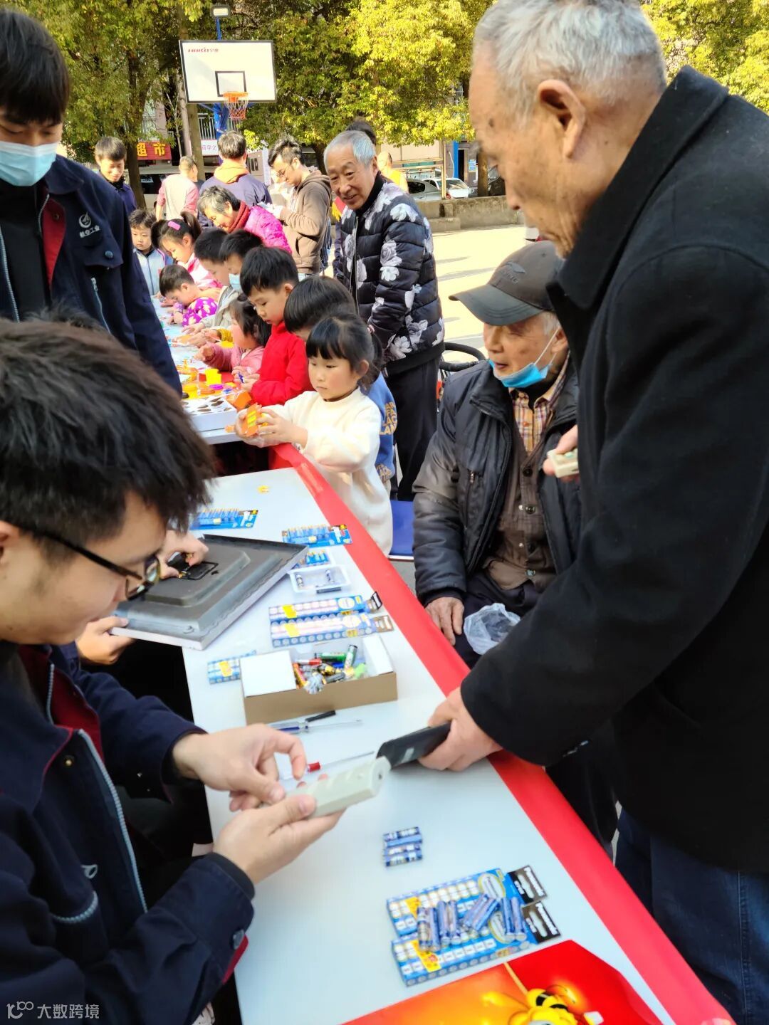 修理组为居民们修理小电器、更换电池。