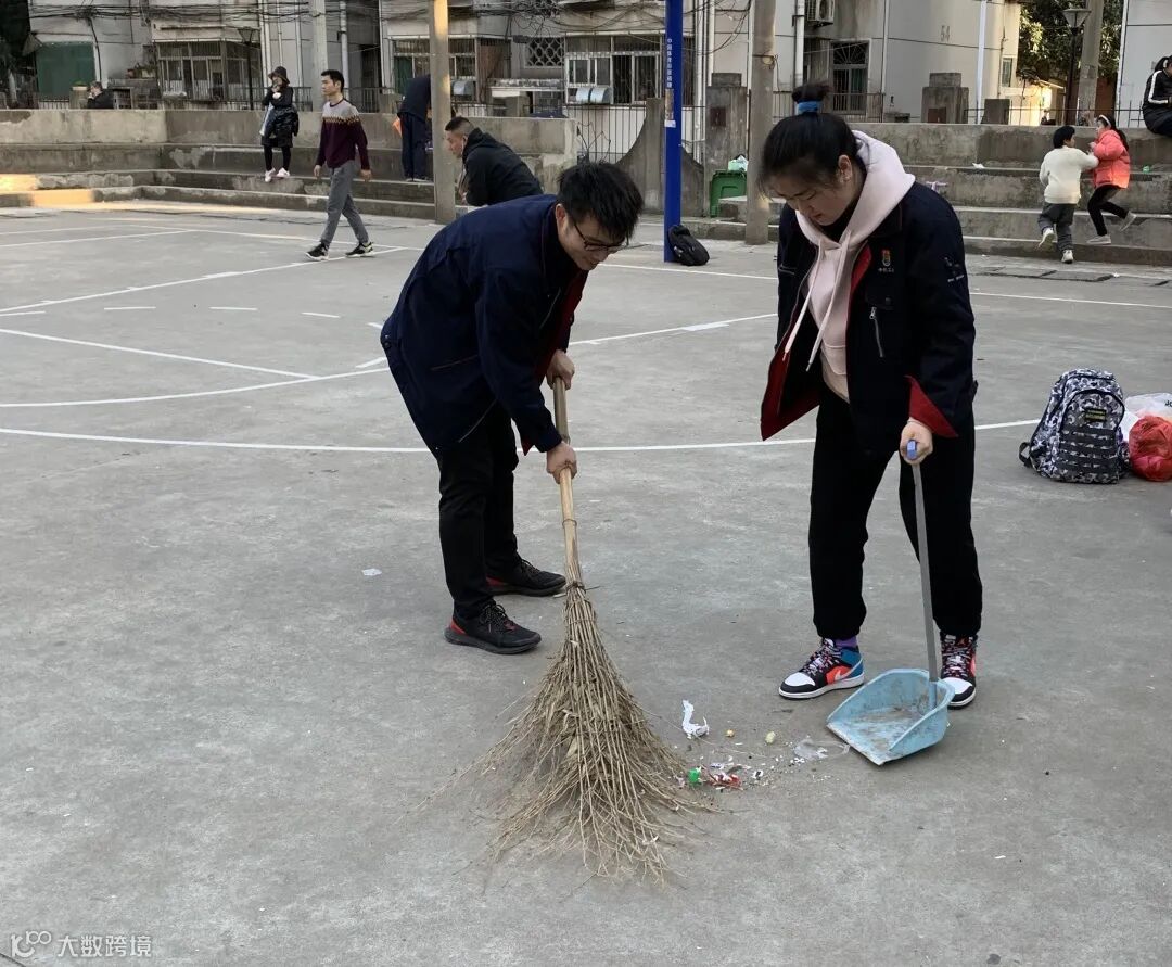 活动结束后,志愿者认真将活动场地清理干净。
