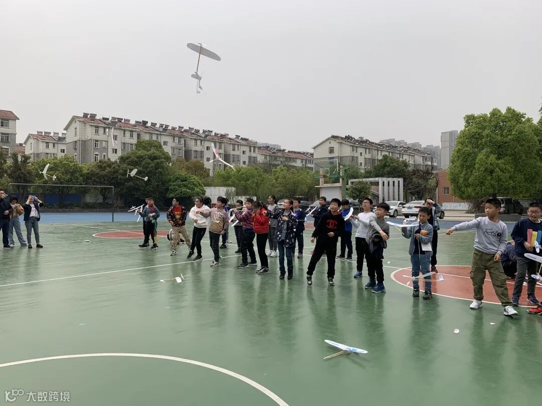 制作完毕后,孩子们在操场分组进行航模试飞比赛。