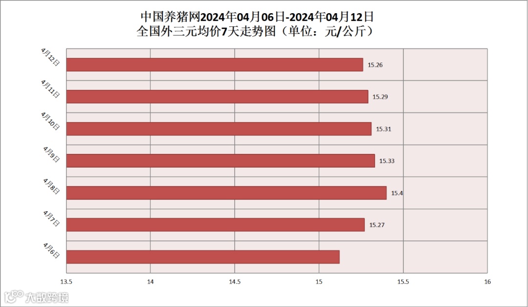 其他生猪品种方面,生猪内三元均价为15.09元/公斤,价格较昨日(15.20元/公斤)下跌了0.11元/公斤;生猪土杂猪均价为14.68元/公斤,价格较昨日(14.70元/公斤)下跌了0.02元/公斤。