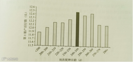 、繁殖力和利用年限,若配种过早:①母猪的产仔数少,繁殖性能差,又会导致仔猪初生重过大而导致难产;②因身体并未发育成熟,过早配种对终身繁殖性能不利,母猪生产年限少;③分娩过程中,难产和掏产比例增加;④因身体发育差,经过哺乳阶段的身体消耗,容易出现断奶后不发情,出现“二胎综合征”。