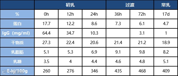 母猪在整个哺乳期所产乳汁的成分会不断变化,尤其是出生后的前12小时内,初乳成分变化较快【表1】。在最初的6个小时,初乳中的蛋白主要是IgG抗体。两周后,乳汁中的IgA抗体会逐渐升高,至哺乳期末IgA抗体将占总乳清蛋白的40%。因此仔猪摄入足够量的初乳对断奶前仔猪的成活率及其后期健康状况尤为重要。