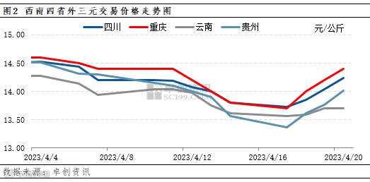 4月19日,国家发改委发布消息称,下一步将继续密切跟踪生猪市场动态,并且会同有关部门按照猪肉储备调节预案,及时开展中央猪肉储备调节工作,必要时加大工作力度,促进生猪市场平稳运行。此消息一出,19日生猪期货2307合约收盘快速攀升至16670元/吨,较开盘涨410元/吨,幅度2.52%,而全国生猪现货价格涨至14.24元/公斤,较前一日涨幅1.42%。西南市场受此提振,亦出现跟涨操作,那么此次涨价能持续多久?