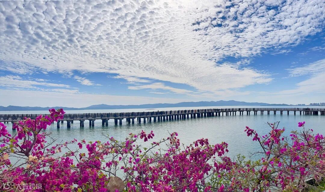 来到了粤东海滨城市汕尾,南海观世音旅游景区,登临景区,远眺大海水天一色,近观白沙湖澄清如镜,漫步于礁岩之间,流连于圣迹奇景,无不令人心旷神怡。