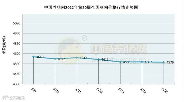 中国养猪网2022年第20周国内豆粕走势图
