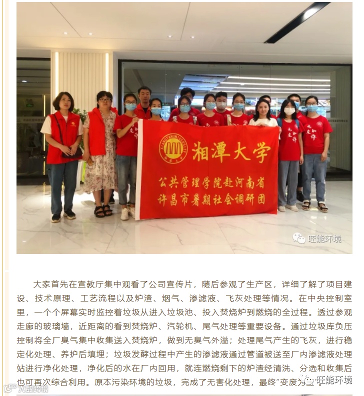 4月7日,上海电力大学师生一行11人来到旺能环境下属项目公司湖州南太湖环保能源有限公司参观考察,经过实地考察、面试会谈等环节,目前已有若干学生初步达成实习就业意向,为旺能人才“专业化、职业化、年轻化”注入新活力,旺能的蓬勃发展将指日可待。