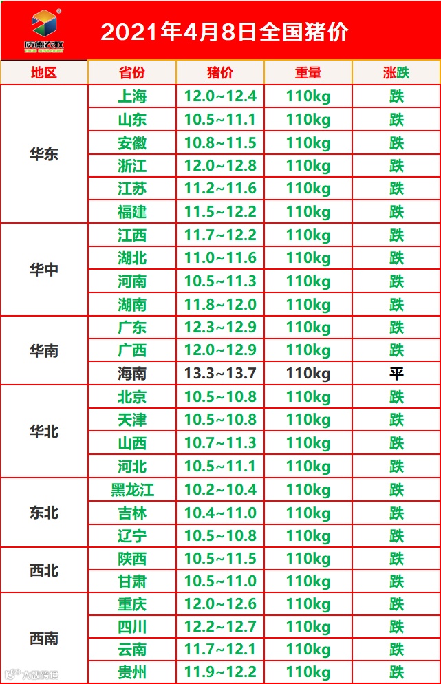 4月8日全国猪价