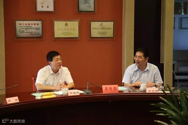▲美欣达集团董事长单建明与湖州市建设局局长李全明会上交流