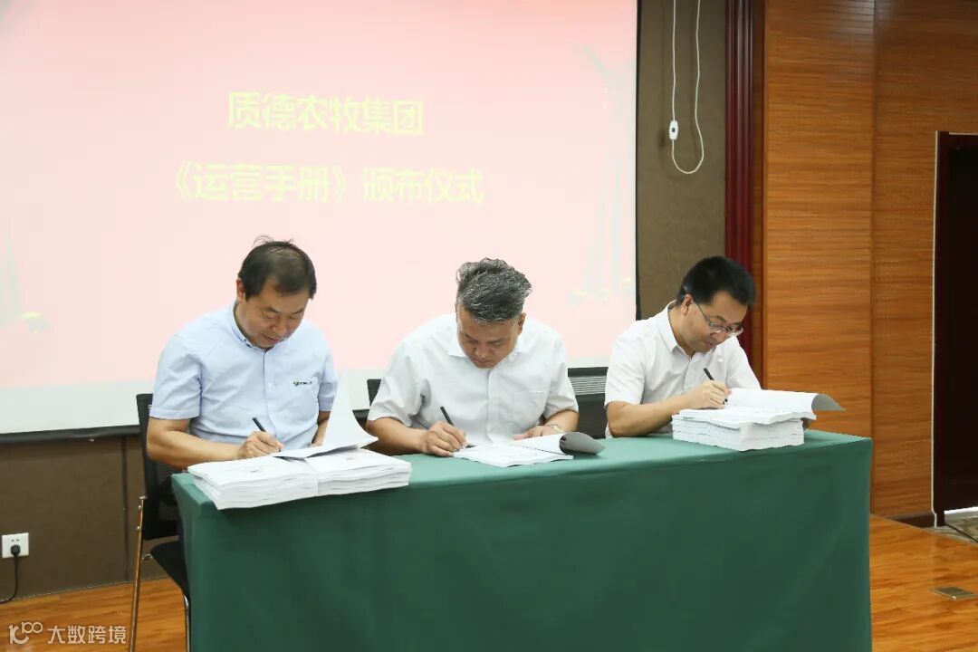 仪式开始,由翟长信先生、水藏玺先生、朱全生先生对2020年V1.0版《运营手册》进行了签批,并将《运营手册》颁发至各手册负责人手中,这将意味着质德农牧集团从此开启系统化管理的法治时代。