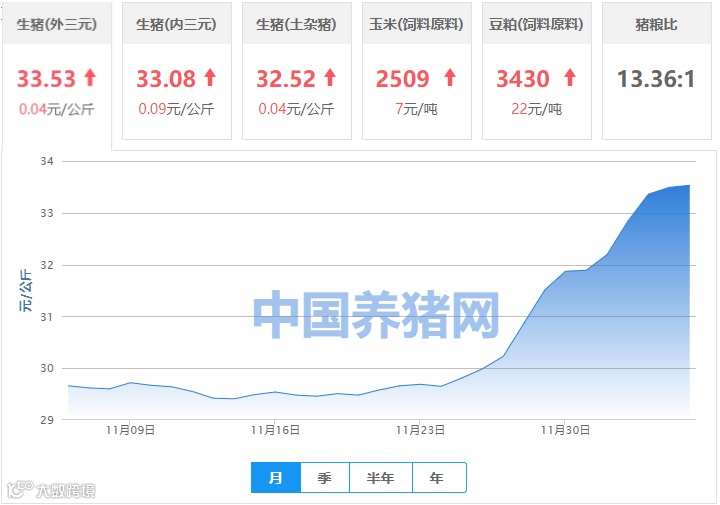 | 地区名称 | 外三元(元/公斤) | 内三元(元/公斤) | 土杂猪(元/公斤) | 玉米(元/吨) | 豆粕(元/吨) |