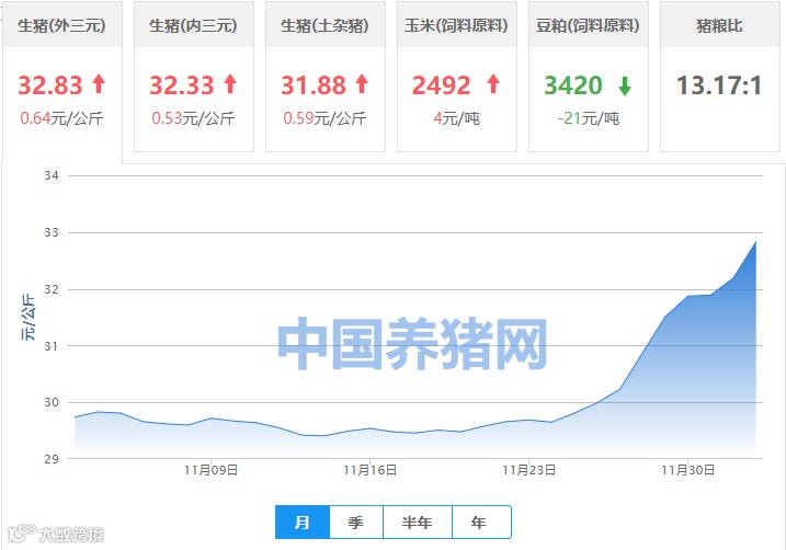 | 地区名称 | 外三元(元/公斤) | 内三元(元/公斤) | 土杂猪(元/公斤) | 玉米(元/吨) | 豆粕(元/吨) |