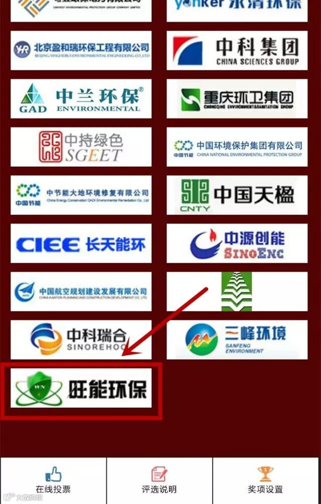 3、拉到页面底部,选择“旺能环保”logo进入投票;