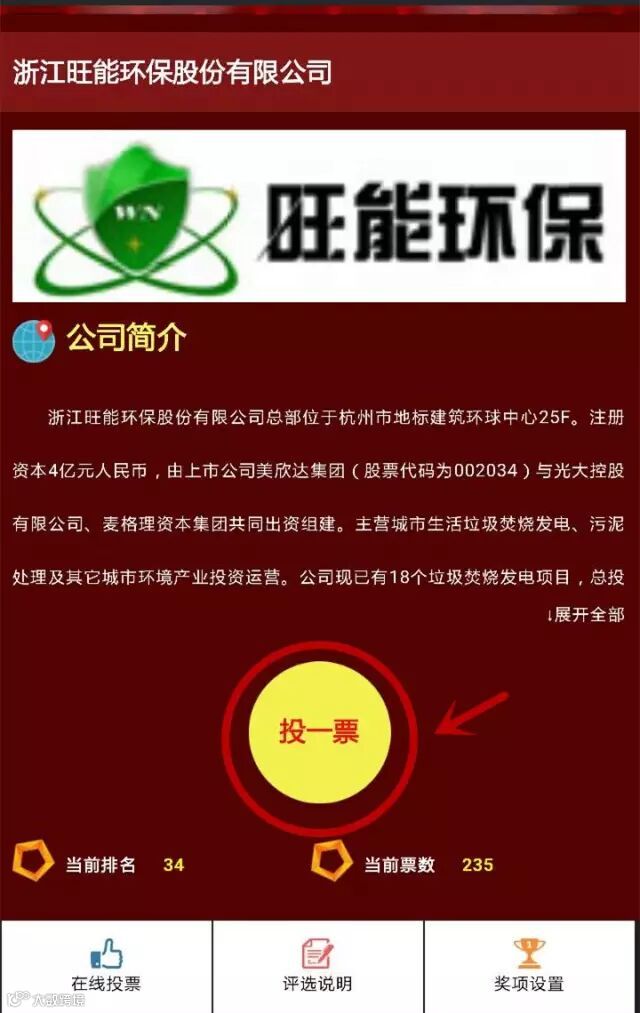 欢迎各位支持旺能的朋友踊跃投票,为旺能环保加油助威!具体投票方式介绍如下: