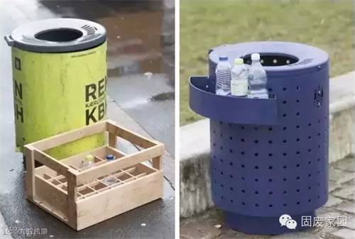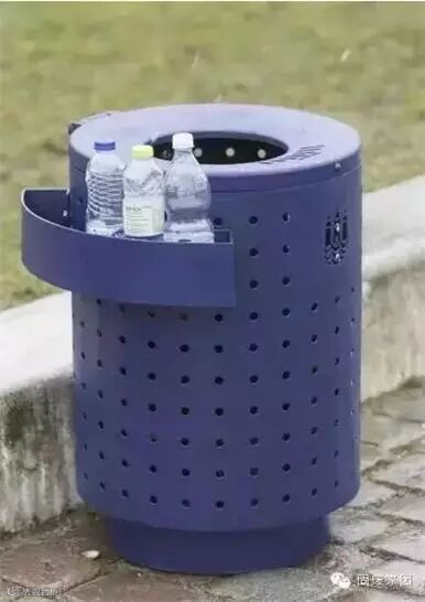 在原先普通的垃圾桶旁边加了一圈“废旧瓶子圈”,专门放瓶子。