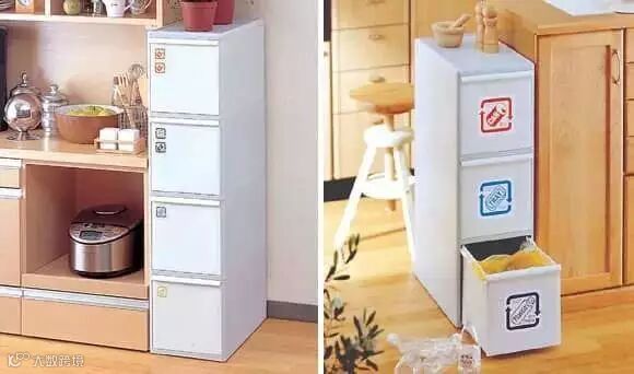 总之,日本各个家庭的分类垃圾桶特别多,所幸日本的垃圾桶形状和外观有很多种类,在厨房多摆几个也不会占地方。