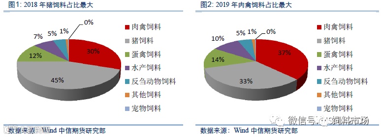 (1)2019年饲料产量同比下降,禽类料第一猪料第二。