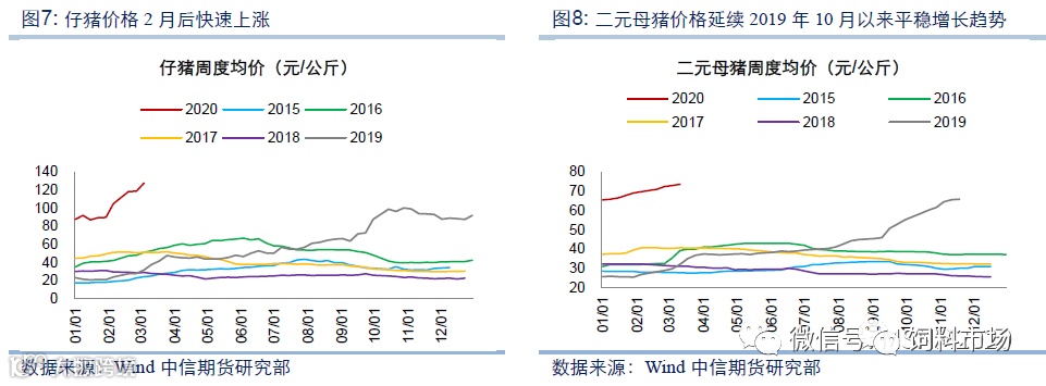 目前生猪、能繁母猪生产形势向好。根据农业农村部监测,2020年2月份,能繁母猪存栏环比增加1.7%,这已是连续第5个月增加,比去年9月份增幅达10%。2020年2月份,全国的500头以上的规模猪场出栏的新生仔猪环比增加3.4%,是去年9月份以来的首次环比增长。2020年2月份生猪存栏出现反季节性增加,环比增幅达到了2.8%。同时在政策大力扶持下,各地区生猪生产恢复越来越广,全国有27个省份的能繁母猪保持了增长。2020年2月份,这些省份的能繁母猪的增速高于全国平均水平。