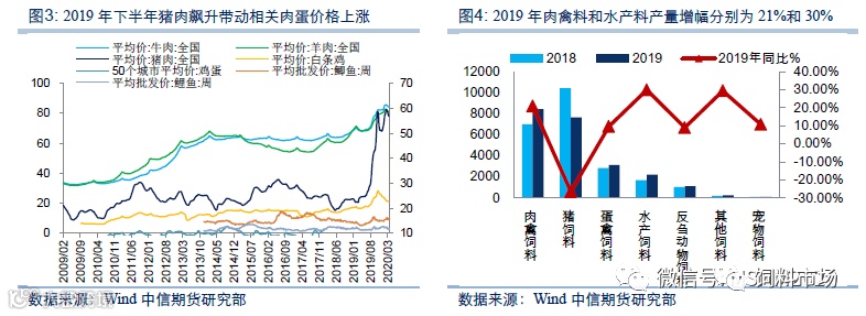 预计2020年饲料产量平稳或略增。受产业周期影响,预计禽类仍是2020年饲料消费大头,生猪料居第二,而水产弹性最高,占比可能继续提升。