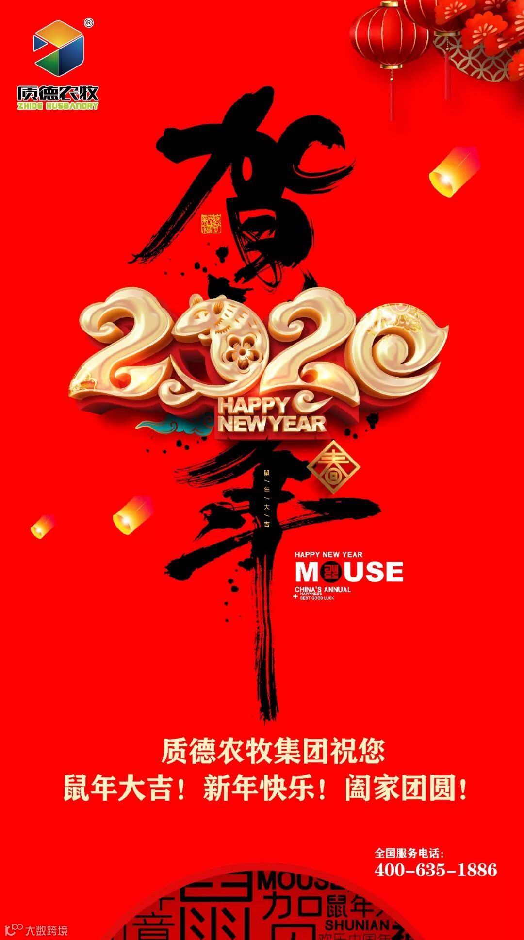 新年到来之际质德农牧集团董事长翟长信先生、形象大使朱时茂先生携全体员工祝您身体健康,万事如意,阖家欢乐,鼠年大吉大利!