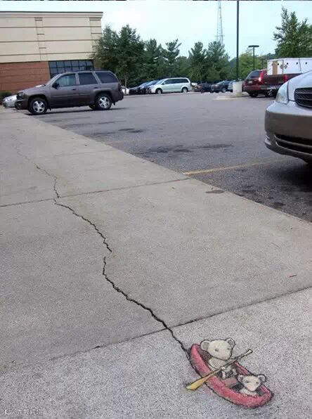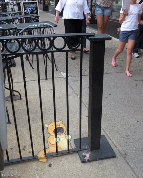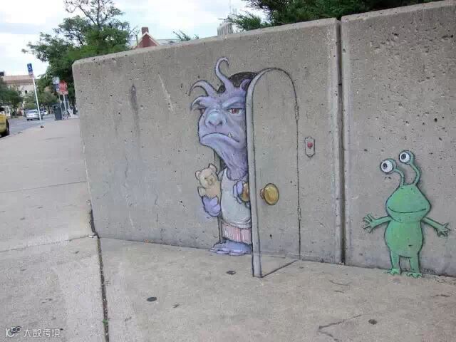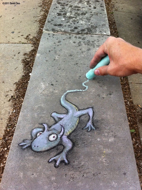 导读: David Zinn是来自美国密歇根州的一位艺术家。他整天奔波于安娜堡的大街小巷,借助街头建筑、道路