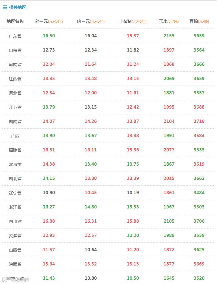 全国价格(2018/11/7) 山东质德农牧