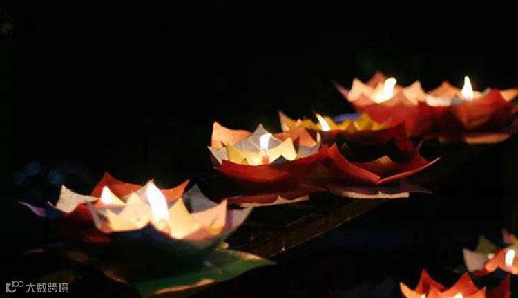 河灯也叫“荷花灯”,一般河灯的底座上放灯盏或蜡
