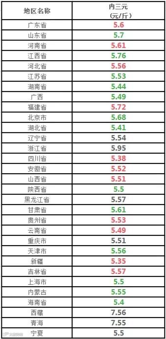 2018年07月02日全国内三元生猪价格行情涨跌表