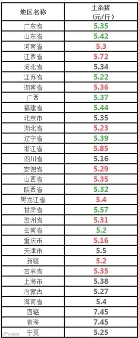 2018年07月02日全国土杂猪生猪价格行情涨跌表