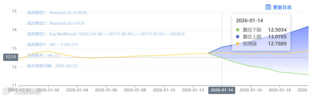 玄田算法是由项目课题组团队原创的非经典逻辑数值聚合理论和不确定性预测方法,构建了基于一致模算子的生猪价格预测模型。该模型采用的聚合函数及一致模相关理论与方法已获得多项国家自然科学基金和省级自然科学资金资助,并获得多项省级自然科学奖奖项。01月14日预测猪价为12.6957,置信区间在12.2098--13.1891之间。01月15日预测猪价为12.8316;01月16日预测猪价为12.7891。