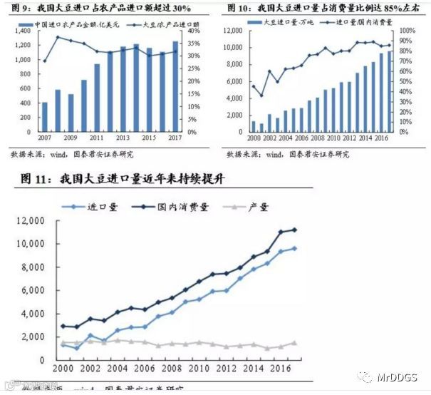 从当前中美贸易战程度来看,我们认为短期打大豆贸易战的可能性不大。倘若未来中美贸易战明显升级,则不排除我国打出大豆这张最后王牌,对美国采用提高关税等反制手段。