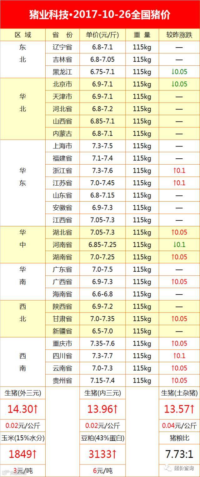 今日猪价•2017-10-26全国猪价
