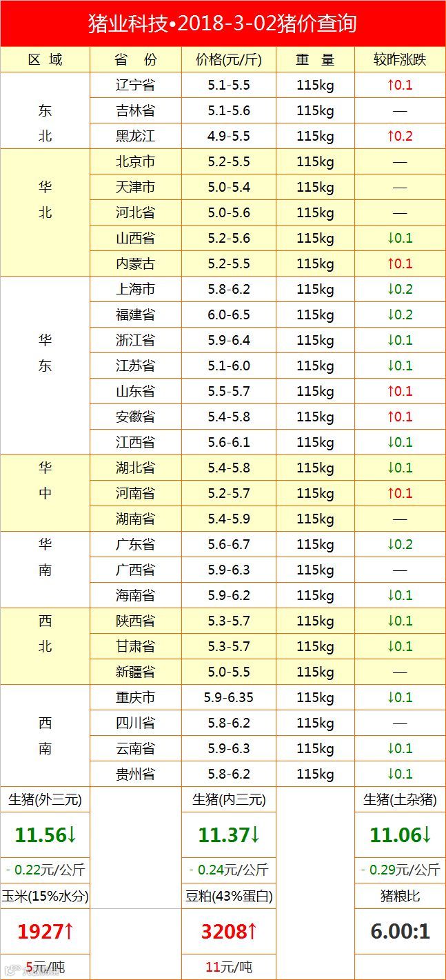今日猪价•2018-3-02全国猪价(跌势放缓,部分有涨)